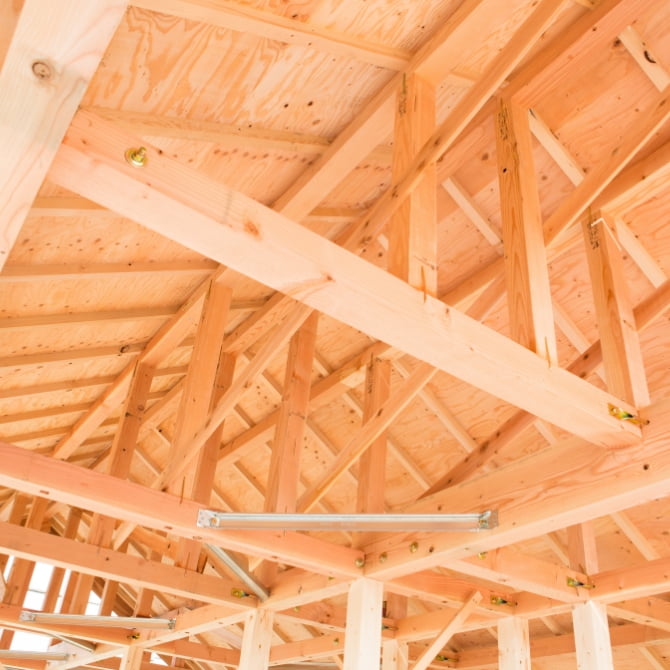 在来軸組工法のメリットは、リフォーム時に間取り変更が行いやすい、メンテナンスがしやすい、通気性や断熱性に優れ、日本の風土に適している……など。